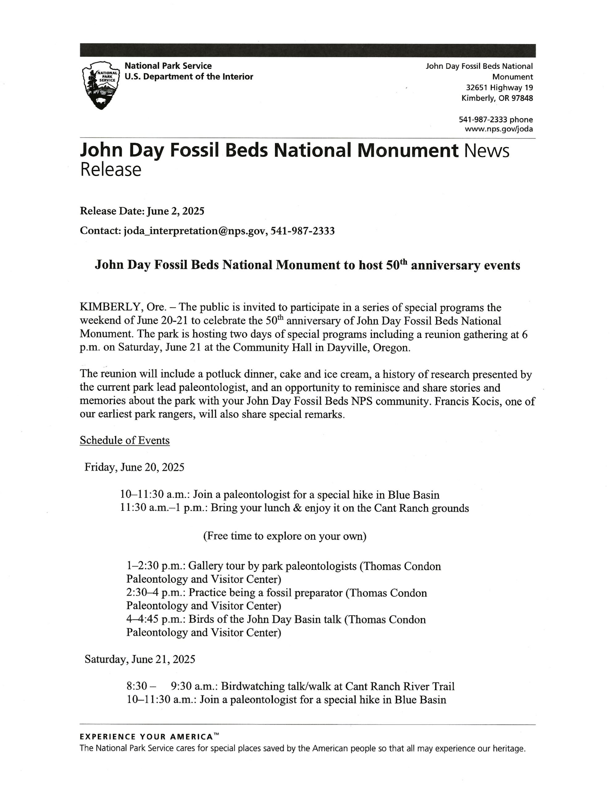 John Day Fossil Beds National Monument 50th Anniversary