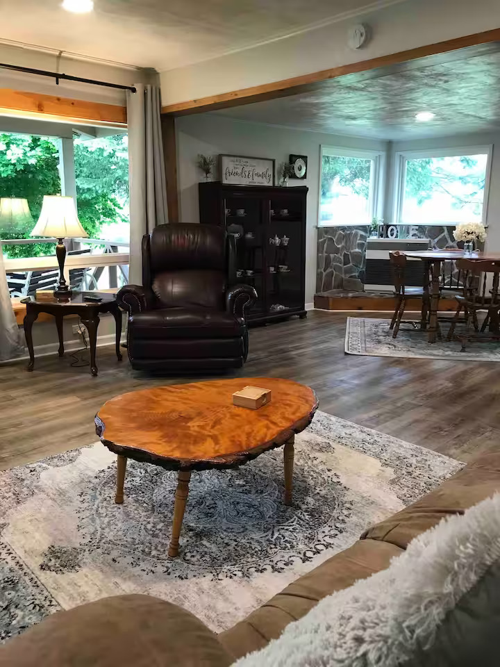 Forget your worries in this spacious and serene space. The farmhouse will make you feel right at home. Has fast WiFi for those that want to connect. There is an older rock patio to enjoy the evenings grilling and maybe a competitive game of mini corn hole. The sweet retreat has the privacy you want and the abundance of surrounding recreation that will make your stay memorable. With 3 queen beds there is room to sleep 6 comfortably.